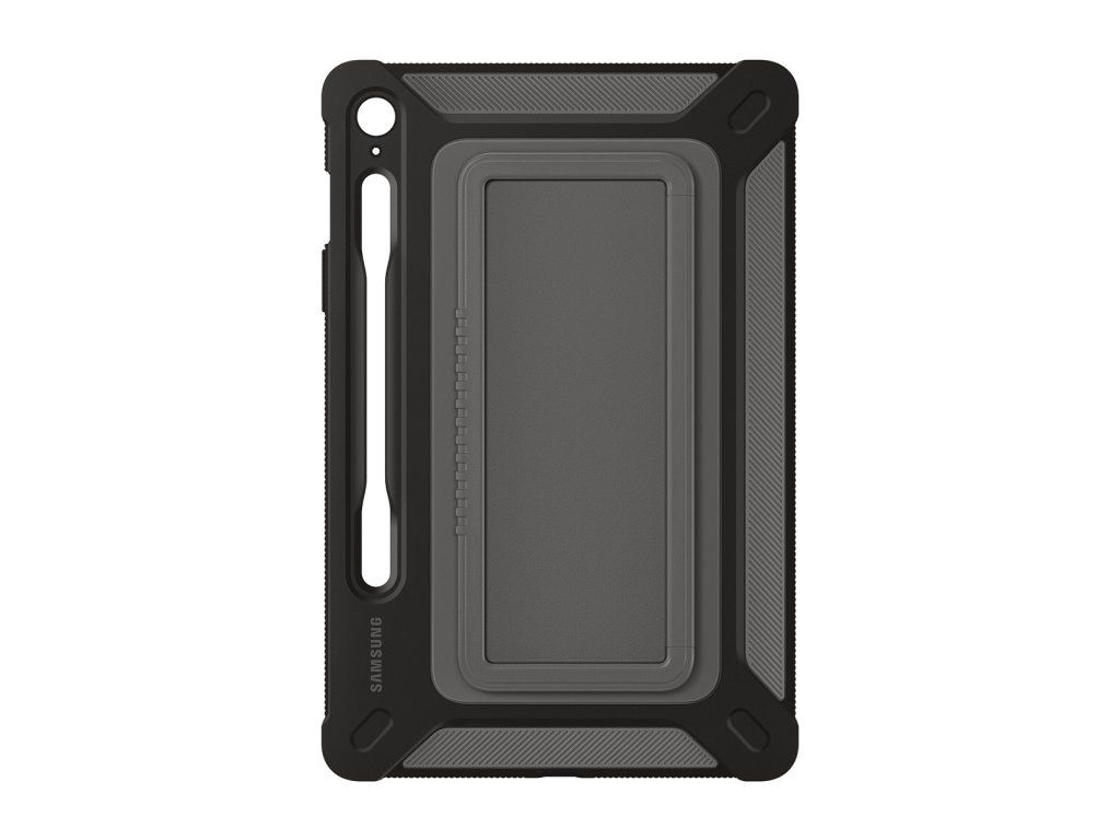Samsung Odolný zadní kryt pro Samsung Galaxy Tab S9 FE Titan Odolný a spolehlivý Vezměte si svůj tablet bez obav ven. S tímto krytem, vyrobeným v souladu s vojenským standardem odolnosti (MIL-STD 810G-516.7), bude vaše zařízení spolehlivě chráněno před drobnými pády a nárazy na cestách. Stabilní stojan, pohodlné držení Díky vestavěnému stojánku na zadní straně pouzdra můžete zařízení pohodlně prohlížet v režimu na šířku. Funguje také jako rukojeť pro snadné přenášení, takže vám tablet zůstane v ruce i na cestách. Mějte své pero S Pen v bezpečí a neustále po ruce Vestavěný držák pera S Pen je praktický doplněk, s jehož pomocí budete mít pero S Pen po ruce a snadno přístupné, kdykoliv jej budete potřebovat. Barva: Černá Rozměry: 174,5 × 263 × 21,2 mm Váha: 267 g Kompatibilita: Galaxy Tab S9 FE