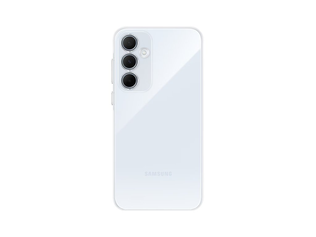 A35 Průhledný zadní kryt Ukaž, co tě baví. Průhledný kryt pro Galaxy A35 5G zvýrazní to nejlepší z původního designu a zároveň pokryje tvůj chytrý telefon tenkou odolnou vrstvou, která ho ochrání před poškrábáním. Originální design jako nový. Kryt s vnitřní i vnější povrchovou úpravou proti poškrábání zajistí bezpečnou ochranu uloženého zařízení. Bez neustálých šmouh a poškození zůstanou také čočky fotoaparátu, které jsou umístěny v esteticky čistém a laserem vybroušeném ostrůvku. Zapoj svojí fantazii! S průhledným krytem budeš mít stále výhled na původní barevný design svého mobilního telefonu, který můžeš ozdobit pomocí nejrůznějších samolepek. *Lehký, tenký a přesto odolný kryt *Ochrana před poškrábáním, nárazy a pády