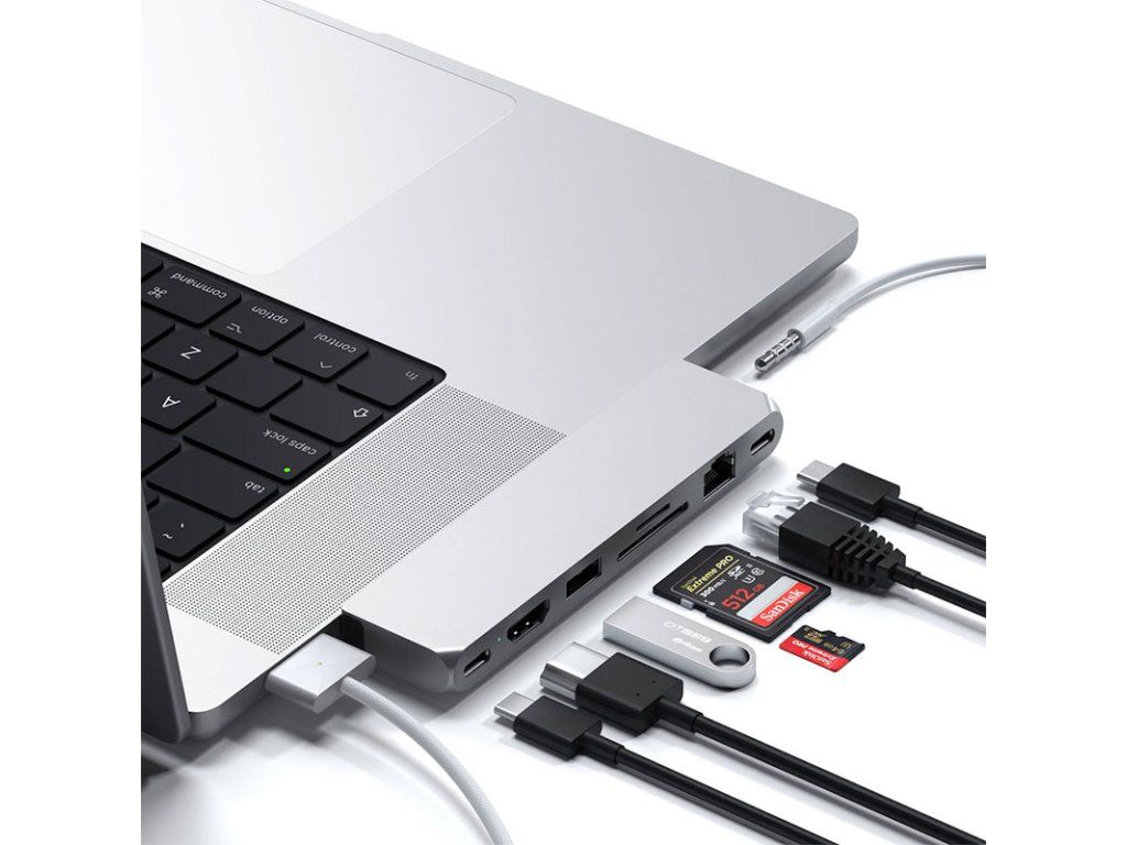 - obsahuje plne funkčný port USB-4, HDMI, čítačky kariet, dátové porty USB-A a USB-C, port pre ethernet a audio konektor