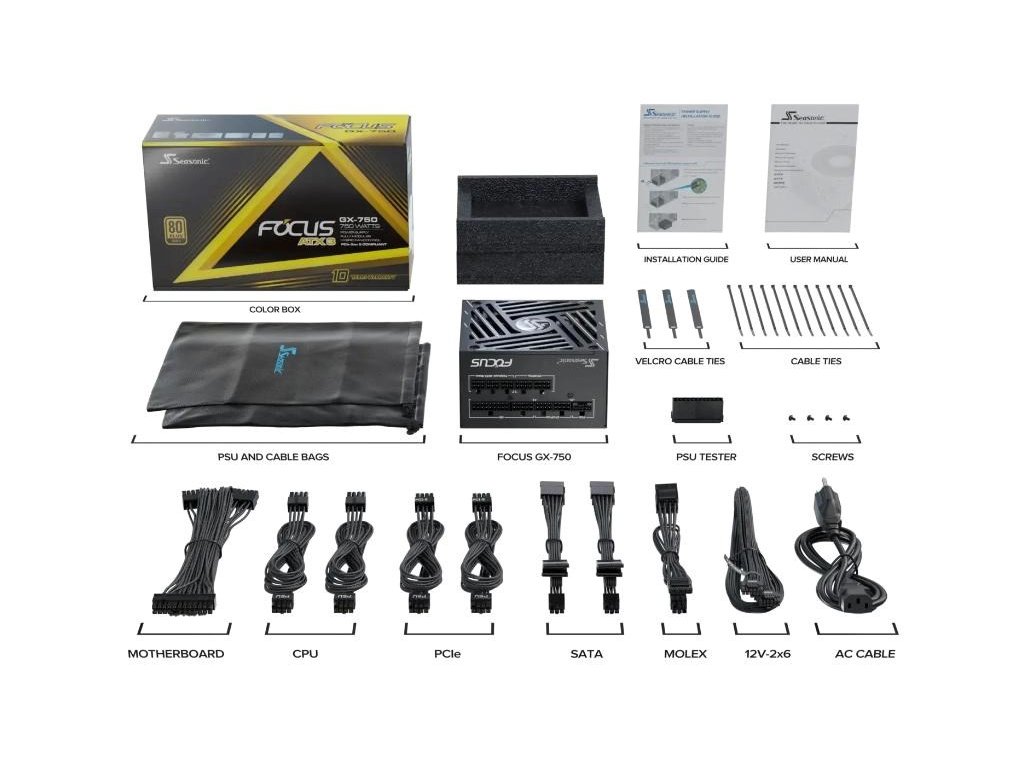 SEASONIC zdroj 750W Focus GX-750, 80+ GOLD, ATX 3.1, PCIe 5.1 FOCUS-GX-750-V4 Seasonic