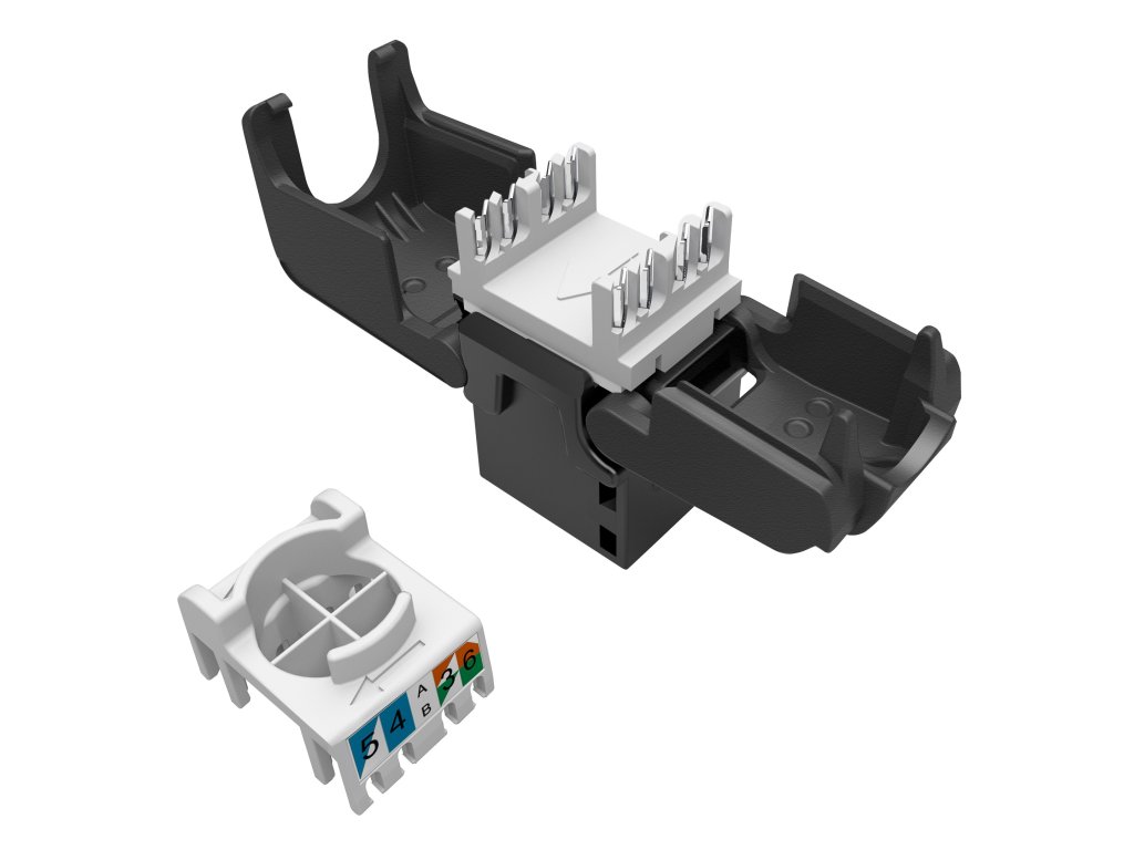 Samořezné keystony Solarix se vyznačují velmi jednoduchou instalací, ke které není nutné použít zařezávací nástroj. Tyto keystony bez problémů splňují parametry specifikované v mezinárodních standardech strukturované kabeláže ANSI/TIA 568, ISO/IEC 11801 a EN 50173 pro kategorii 6 a třídu vedení Class E, včetně všech nejnovějších dodatků. Keystony jsou osazeny 180° samořeznou svorkovnicí, která je označena barevným schématem podle typu zapojení, a to buď podle standardu T568A, nebo T568B. Do této svorkovnice je možné zařezat kabely typů drát s vodiči o velikosti AWG 26 – 22. Standardní barva nestíněných samořezných keystonů Solarix je černá, u stíněné verze je tělo modulu opatřeno stříbrnou kovovou částí. Díky svým kompaktním rozměrům jsou tyto samořezné keystony kompatibilní s modulárními zásuvkami většiny výrobců (např. ABB, Schneider, Legrand, Moeller, Hager, Obzor atd.). Tuto kompatibilitu si můžete ověřit v tabulce kompatibility, která se nachází v záložce ''Odkazy''. Splnění výkonových parametrů keystonů Solarix SXKJ-6-UTP-BK-SA bylo potvrzeno nezávislou zkušební laboratoří FORCE TECHNOLOGY. Keystony od této testovací autority obdržely certifikát na úrovni Component Level. Testy proběhly včetně ověření kompatibility s čtyřpárovým PoE (podle IEC 60512-99-002) - tzv. 4PPoE/PoE++. Certifikát je k dispozici v záložce ''Odkazy'' nebo přímo na stránkách laboratoře FORCE. Technické parametry Kategorie: CAT6 Podporované protokoly: 2.5G/5GBASE-T a nižší Stínění: ne Min. životnost portu: 1 000 zapojení/odpojení Krytí kontaktů: 50 µ zlata a 100 µ niklu Svorkovnice: samozářezová Min. životnost svorkovnice: 200 zařezání Velikost a typ vodiče: AWG 26 - 22, drát Materiál nekovových částí: FR plast podle UL94-0 Barva: černá Skladovací teplota: -40 až 70 °C Provozní teplota: -10 až 60 °C Max. provozní vlhkost: 93 % Balení: 1 ks, plastový sáček Rozměry balení (výška x šířka x hloubka): 145 mm x 90 mm x 20 mm Přepravní balení: 280 ks, kartónový box Rozměry přepravního balení (výška x šířka x hloubka): 230 mm x 515 mm x 400 mm