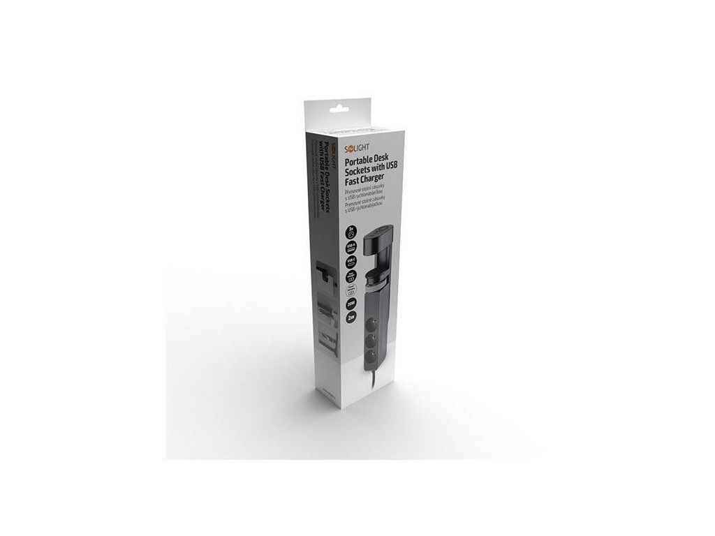 Solight 3z + USB A+C přenosné stolní zásuvky, 2m, černá, USB rychlonabíječka 20W PD PP105C-PD20-B