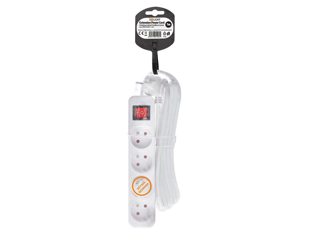 Solight prodlužovací přívod, 4 zásuvky, bílý, vypínač, 7m PP34
