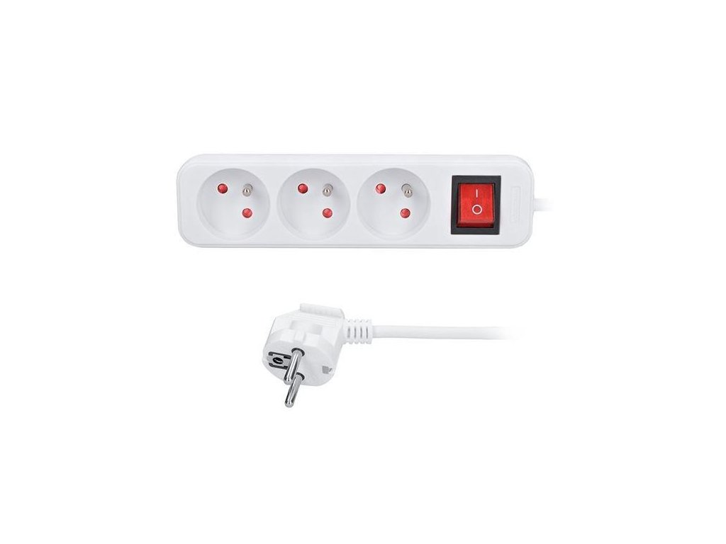 Solight prodlužovací přívod, 3 zásuvky, bílý, vypínač, 1,5m PP10