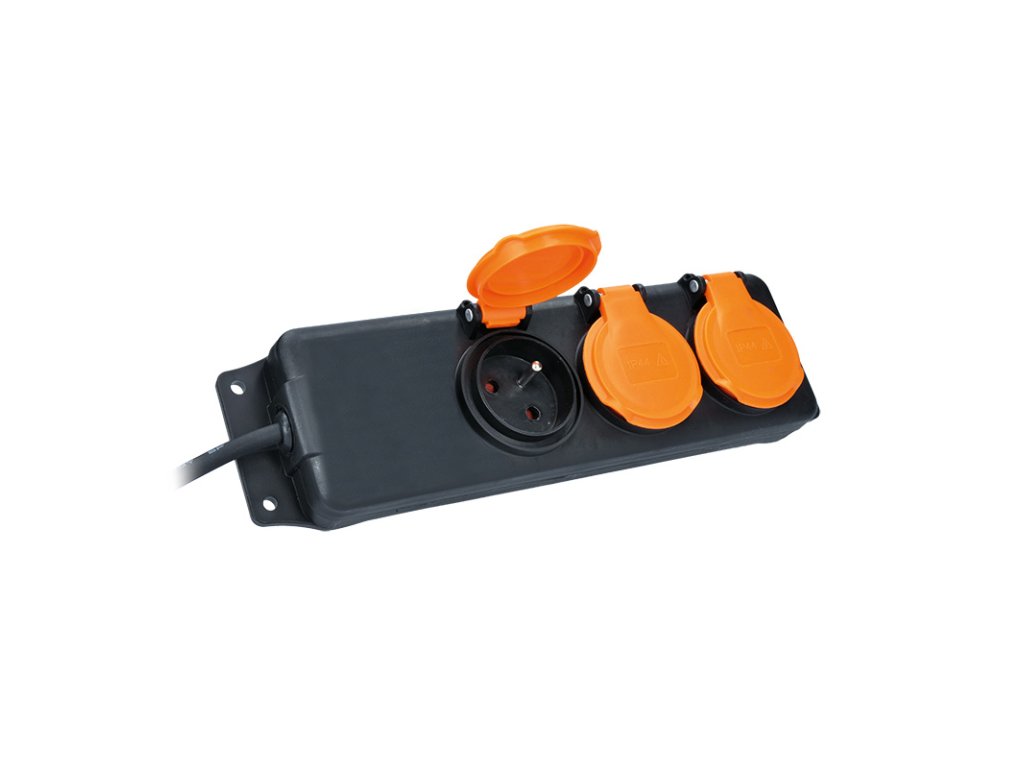 Solight prodlužovací přívod IP44, 3 zásuvky, gumový kabel, venkovní, 10m PP324