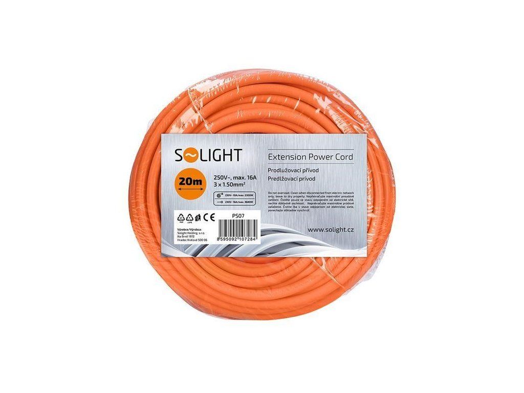Solight prodlužovací přívod - spojka, 1 zásuvka, 20m, 3 x 1,5mm2, oranžová PS07