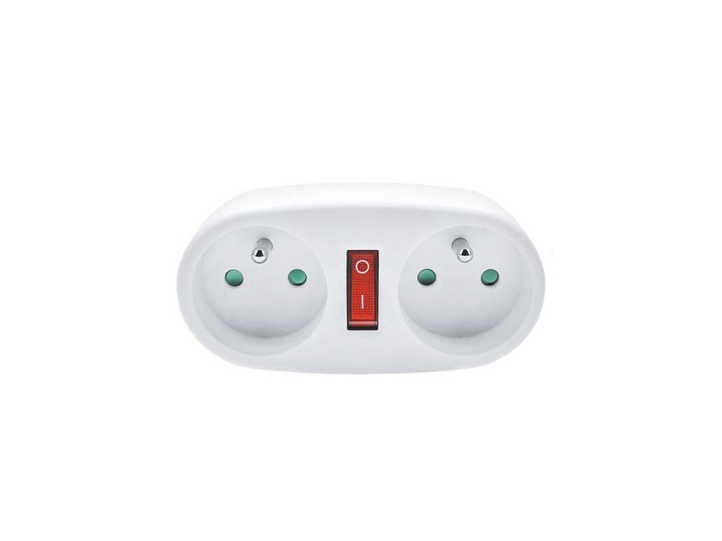 Solight rozbočka, 2 x 10A, bílá, vypínač P107