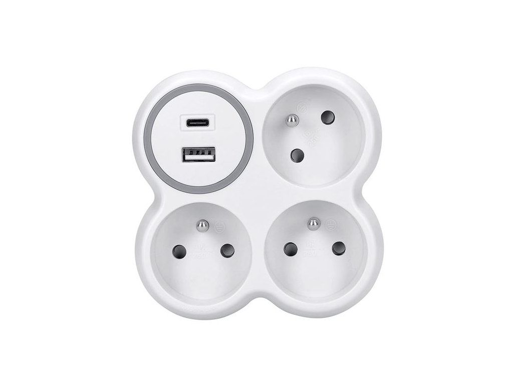 Solight Rozbočovač, 3x 15A, USB nabíjačka A+C, biely-sivý, vypínač P106USBC