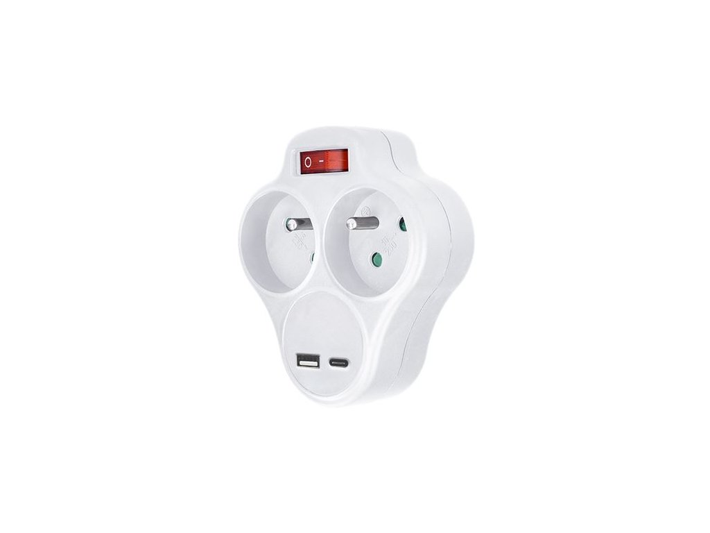 Solight Rozbočovač s USB A+C nabíjačkou, 2 x 10A, biely, vypínač P99USBC