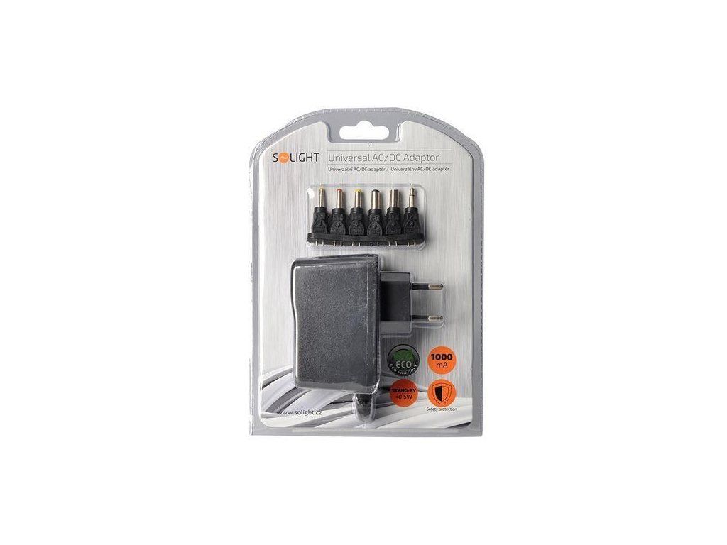 Solight univerzální síťový adaptér 1000mA, stabilizovaný, výměnné konektory DA25