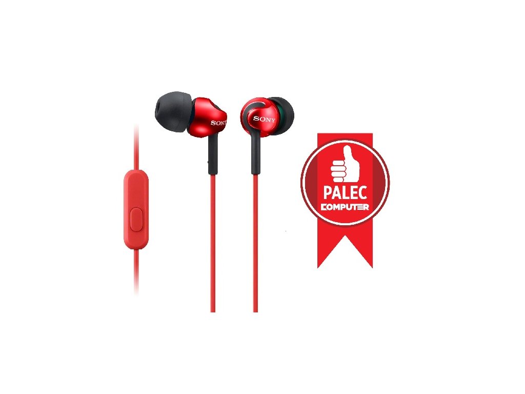 Sluchátka do uší, 9mm neodymové reproduktory, frekvenční rozsah 5 až 24000 Hz. Handsfree kabel s mikrofonem pro Android telefony. Barva červená