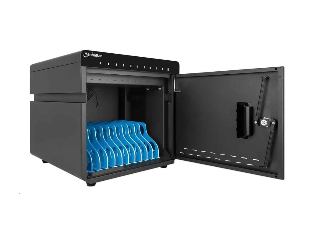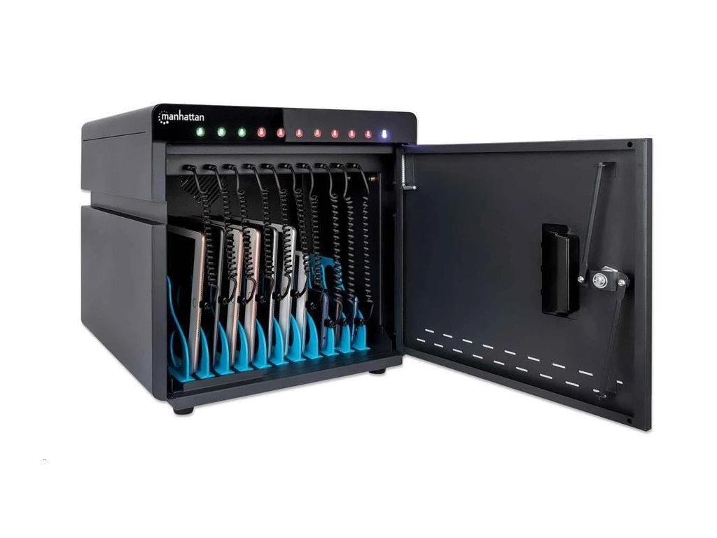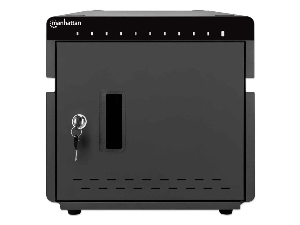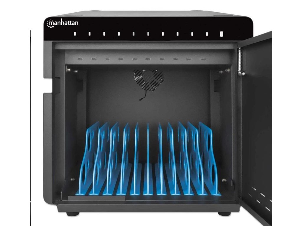 Stolná nabíjacia skrinka MANHATTAN - 10 portov, 180 W, prepäťová ochrana, tiché vetranie, kovový kryt, čierna 715942 Manhattan