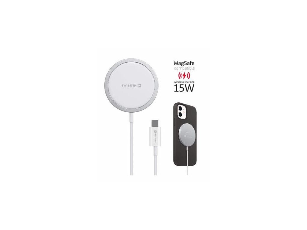 Bezdrátová nabíječka SWISSTEN MagStick pro dobíjení zejména Iphone 12 a novějších (kompatibilní s MagSafe). Výkon 15W. Baleno v blistru SWISSTEN.