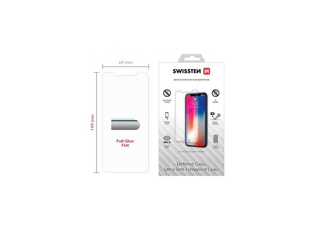 Spodní vysoce adhesivní část s tenkou silikonovou vrstvou, která výrazně zjednodušší aplikaci. Sklo je opatřeno speciální oleofobní vrstvou - vysoká citlivost. Tvrdost 9H. Tloušťka 0,3 mm. Zaoblené hrany.