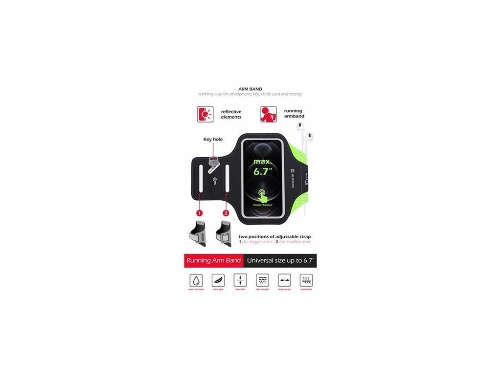 Pouzdro Swissten Armband je určen pro všechny sportovní nadšence, kteří chtějí mít při svém oblíbeném sportu svůj smartphone u sebe. Umožní tak snadno využívat aplikace monitorující sportovní aktivity, poslouchat oblíbenou hudbu nebo přijímat hovory. Díky plně transparentní přední fólii s podporou dotykového ovládání je telefon v pouzdře plně přístupný. Swissten Armband je vyroben z voděodolného materiálu a bez problémů odolá dešti i potu.