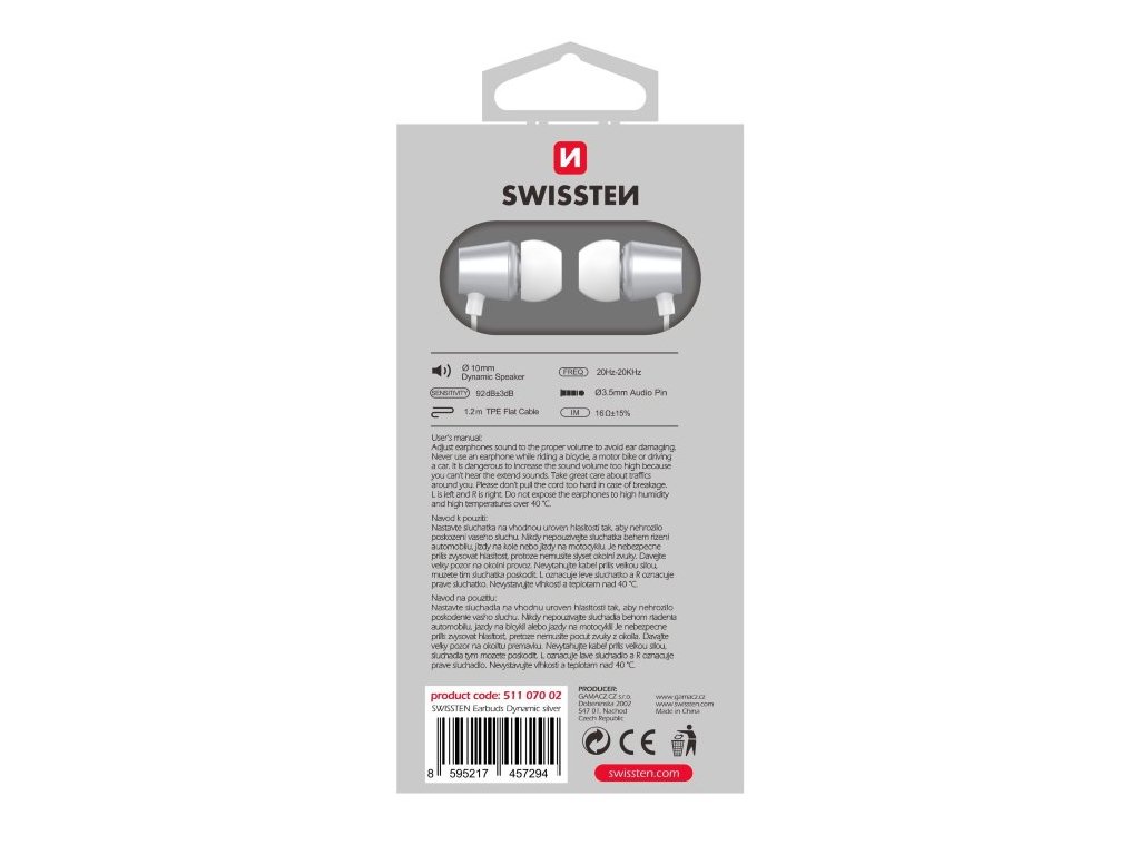 SWISSTEN SLUCHÁTKA EARBUDS DYNAMIC YS500 STŘÍBRNO-BÍLÉ 51107002 Swissten