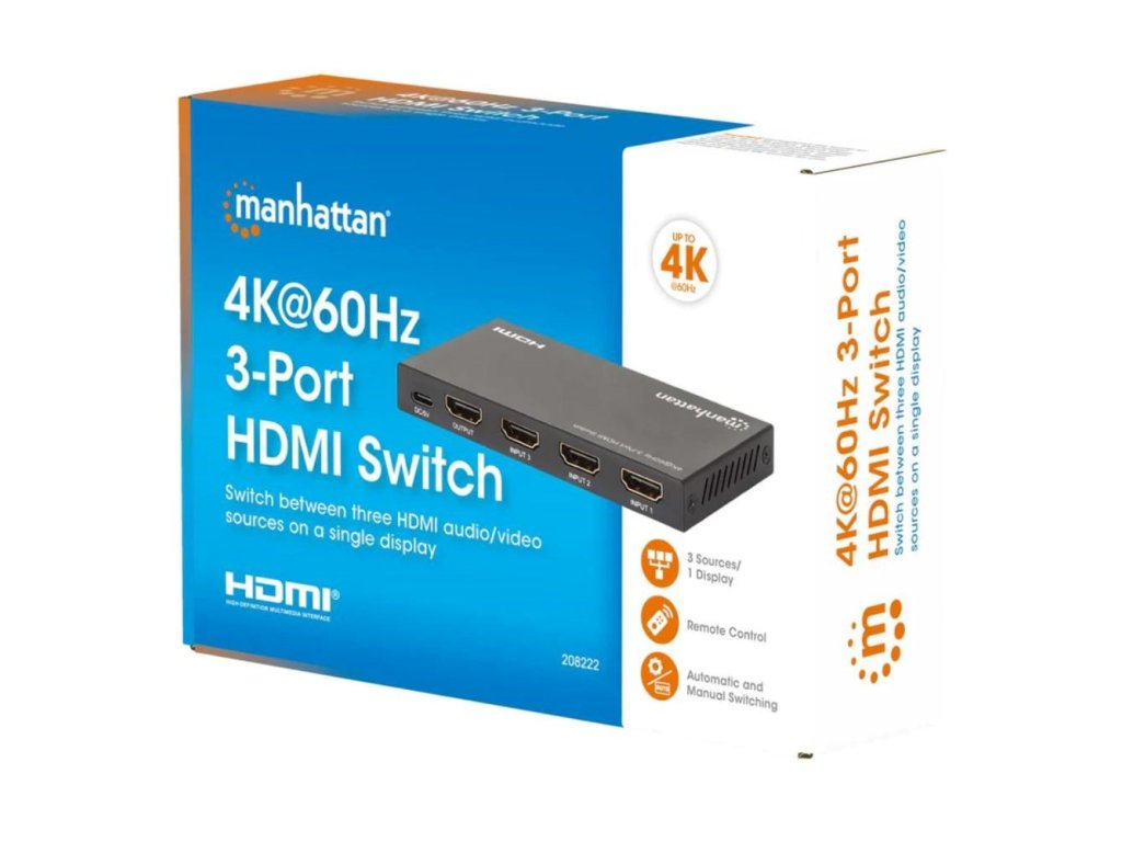 Switches between three HDMI audio/video source signals on a single display Resolutions up to Ultra-High-Definition (UH 208222 Manhattan