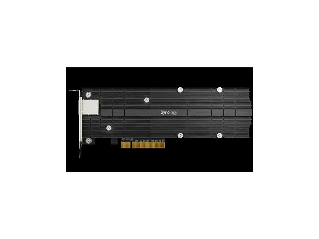 Adaptér Synology E10M20-T1 pomáhá soucasne zvyšovat výkon vstupu/výstupu i šírky pásma s využitím jediného rozširovacího slotu PCIe vašeho zarízení Synology NAS.