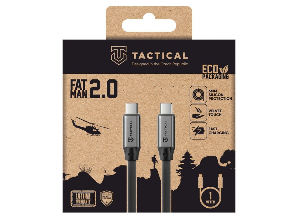 Tactical Fat Man 2.0 Kabel USB-C/USB-C 1m Šedá Tactical Fat Man 2.0 je rychlonabíjecí kabel pro každodenní použití s výkonem až 60W. Specifikace: Výkon: 60W Ochranná vrstva kabelu: 6mm Materiál ochranné vrstvy: Silikon Norma MIL-STD-810H 516.8: Splněna Značka: Tactical Záruka: 2 roky