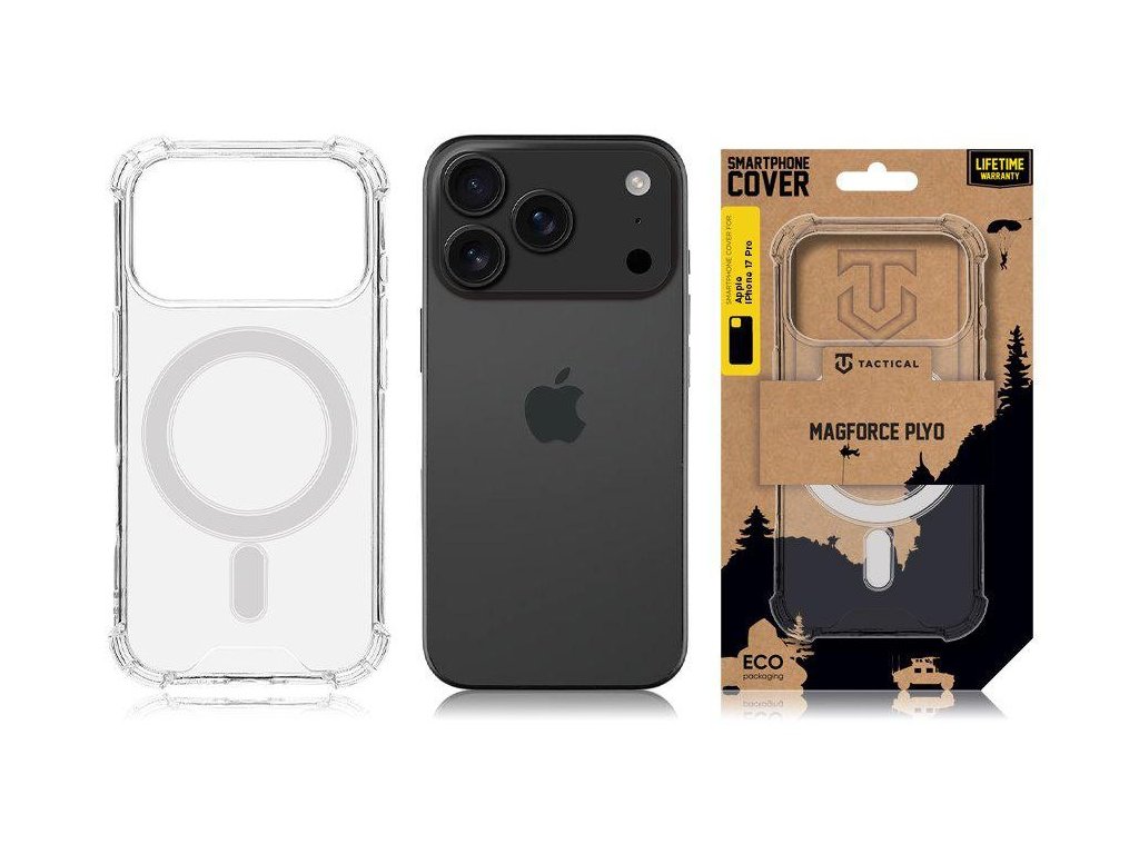 Tactical MagForce Plyo Kryt pro Apple iPhone 17 Pro Tactical MagForce PLYO tenký čirý PC/TPU kryt na záda telefonu se zesílenými rohy pro maximální odolnost při pádu, ale i běžném nošení. Je vyrobený z dokonale čirého pružného silikonového materiálu a je dodáván v ekologickém balení z recyklovaného papíru. Kryt je vyroben z kombinace dvou materiálů. Pevného polykarbonátu na zadní straně a TPU pružného materiálu na bocích. Specialitou je silný magnet pro Apple MagSafe příslušenství.Kryt kryje celá záda, boky a rohy telefonu a chrání ho tak při pádu, ale i při každodenním používání.Tactical MagForce PLYO splňuje přísnou vojenskou normu MIL-STD-810 516, která zajišťuje nejvyšší odolnost proti nárazům a pádům.Tento kryt je navržen pro maximální ochranu tak, abyste se mohli soustředit jen na svá každodenní dobrodružství.Hlavním dva plusy tohoto krytu jsou, že sedí přesně na daný typ telefonu a zároveň zůstávají plně dostupné všechny ovládací prvky a konektory a že extrémně ochraňuje nejzranitelnější část telefonu jakou jsou jeho rohy. Specifikace: Kompatibilita: Apple iPhone 17 Pro Materiál: Pevný polykarbonát (zadní strana), TPU (boky) Barva: Transparentní