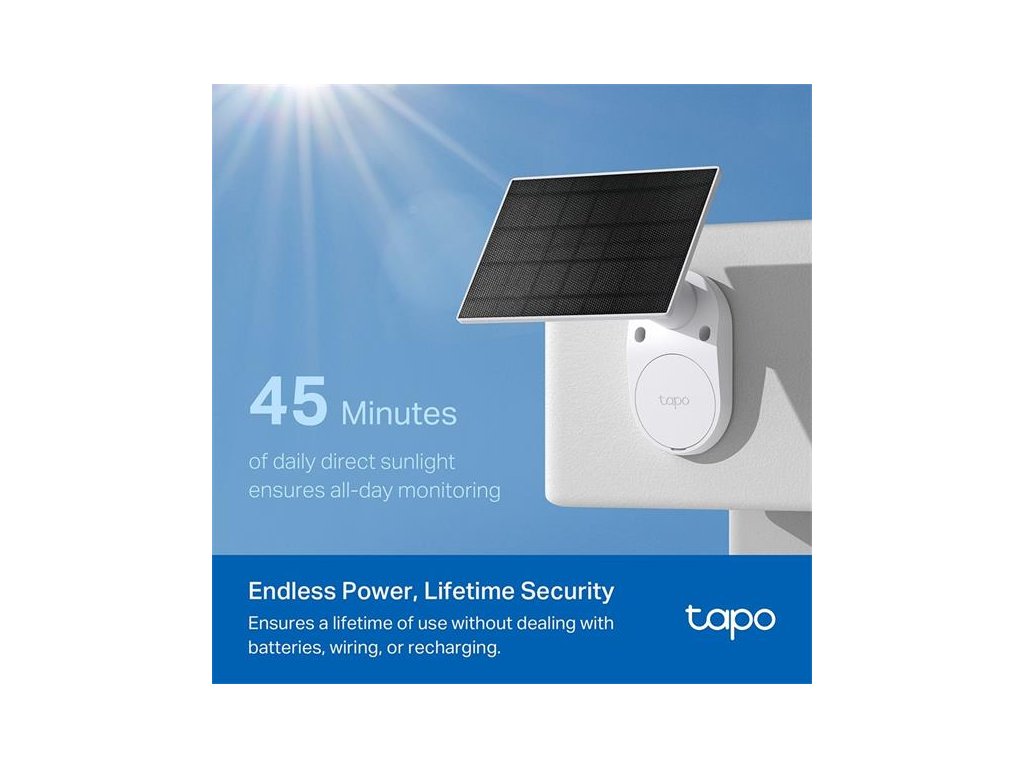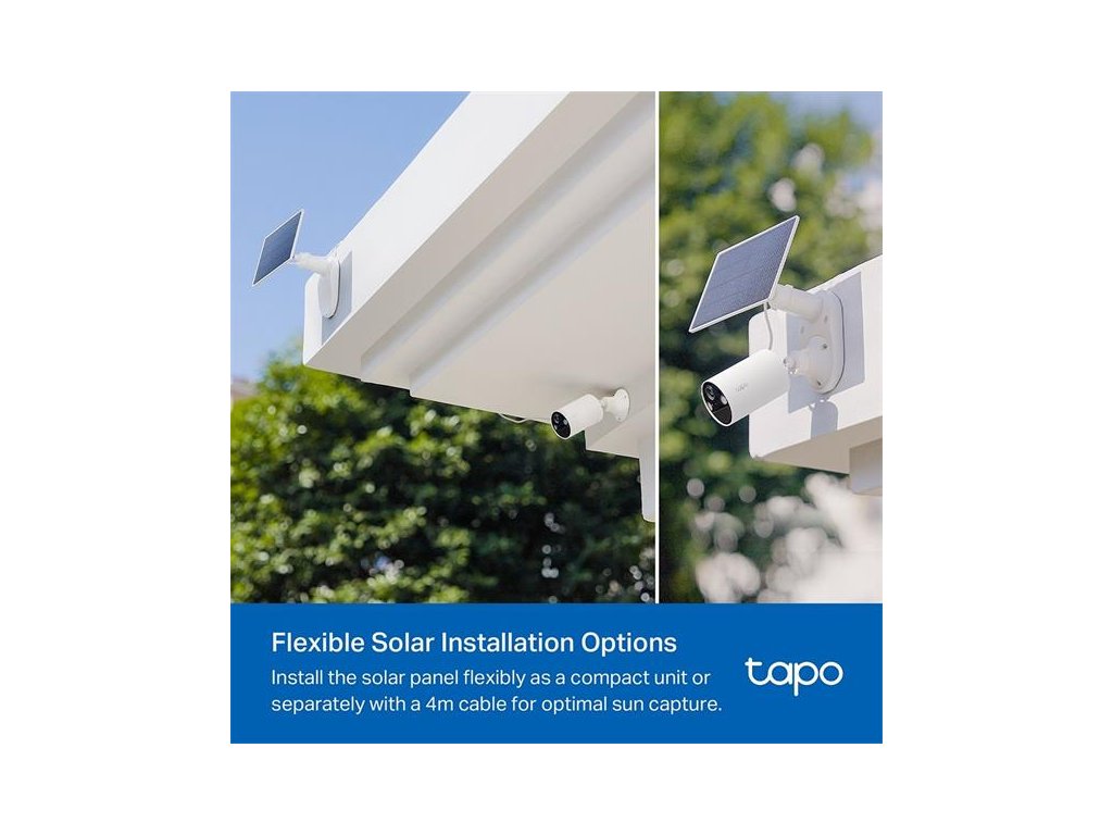 Neprerušované napájanie: Vychutnajte si bezúdržbové zabezpečenie vďaka solárnemu panelu Tapo, ktorý zaisťuje nepretržité napájanie a flexibilnú inštaláciu.