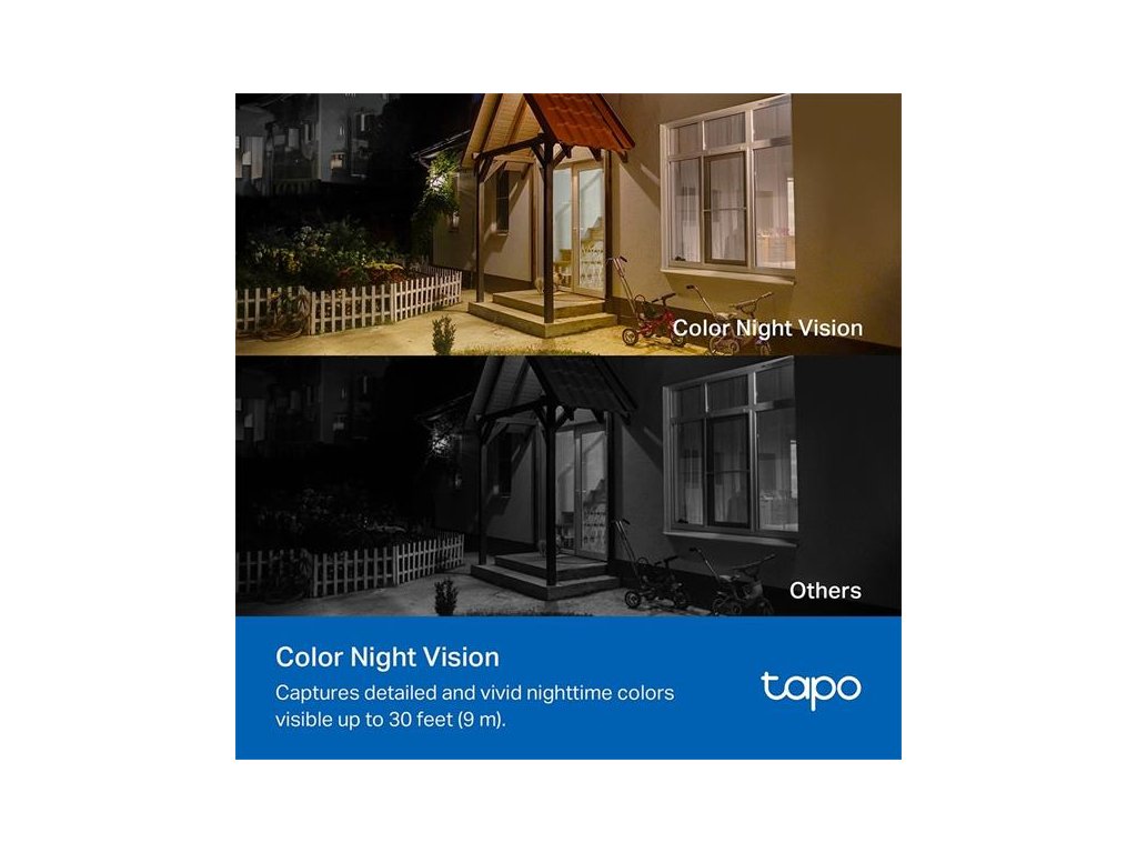 Farebné nočné videnie: Vďaka objektívu s veľkou clonou a vstavaným bodovým svetlám účinným až do vzdialenosti 9 m uvidíte noc v živých farbách.