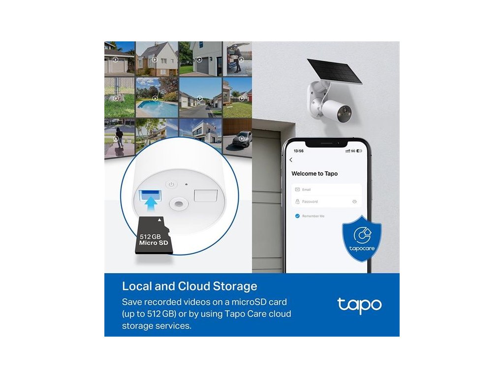 Flexibilné možnosti ukladania: Vyberte si miestne úložisko microSD s kapacitou až 512 GB alebo zabezpečenú cloudovú službu Tapo Care pre väčší pokoj.