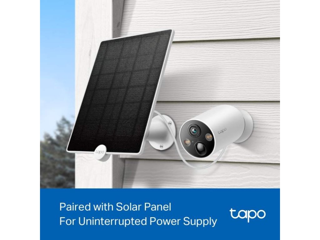 Tapo C425 je venkovní kamera typu bullet ze série TP-Link Tapo, která může záznamy ukládat na paměťovou kartu o podporované kapacitě až 512 GB nebo do Tapo Care Cloud úložiště (placená služba). Maximální rolišení kamery je 2560 x 1440 px při 25/30fps (4MP) a díky objektivu s ohniskovou vzdáleností 2.1mm nabízí široký záběr 134° horizontálně. Pro případ zhoršené viditelnosti ve výbavě nechybí IR přísvit s dosahem až 15m a nezvané návštěvníky odradí zabudovaná zvuková siréna a světelný alarm. Pro případ potřeby komunikace je kamera vybavena také dvoucestným audiem. Kamera je napájena baterií s výdrží až 300 dní*. Dobu výdrže je možné prodloužit použitím solárního panelu Tapo. Vzhledem ke krytí IP66 je kamera vhodná také do venkovního prostředí. Kamera se do sítě připojuje prostřednictvím WiFi 802.11b/g/n.