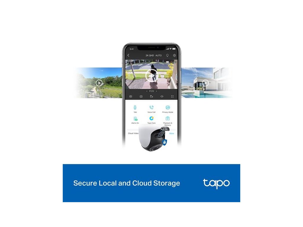 Bezpečné miestne a cloudové úložisko - Ukladajte zaznamenané videá na microSD kartu† alebo do cloudového úložiska Tapo Care**.