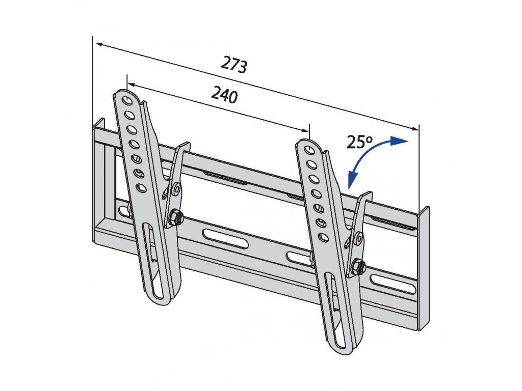 Konstrukce pro upevnění TV na zeď *Použití: TV *Typ držáku: na zeď *Maximální velikost obrazovky: 42'' *VESA: *75 x 75 *100 x 100 *200 x 100 *200 x 200 *Maximální hmotnost: 20 kg *Vertikální polohovatelnost: 25° *Rohový držák: ne *Materiál: kov *Barva: černá