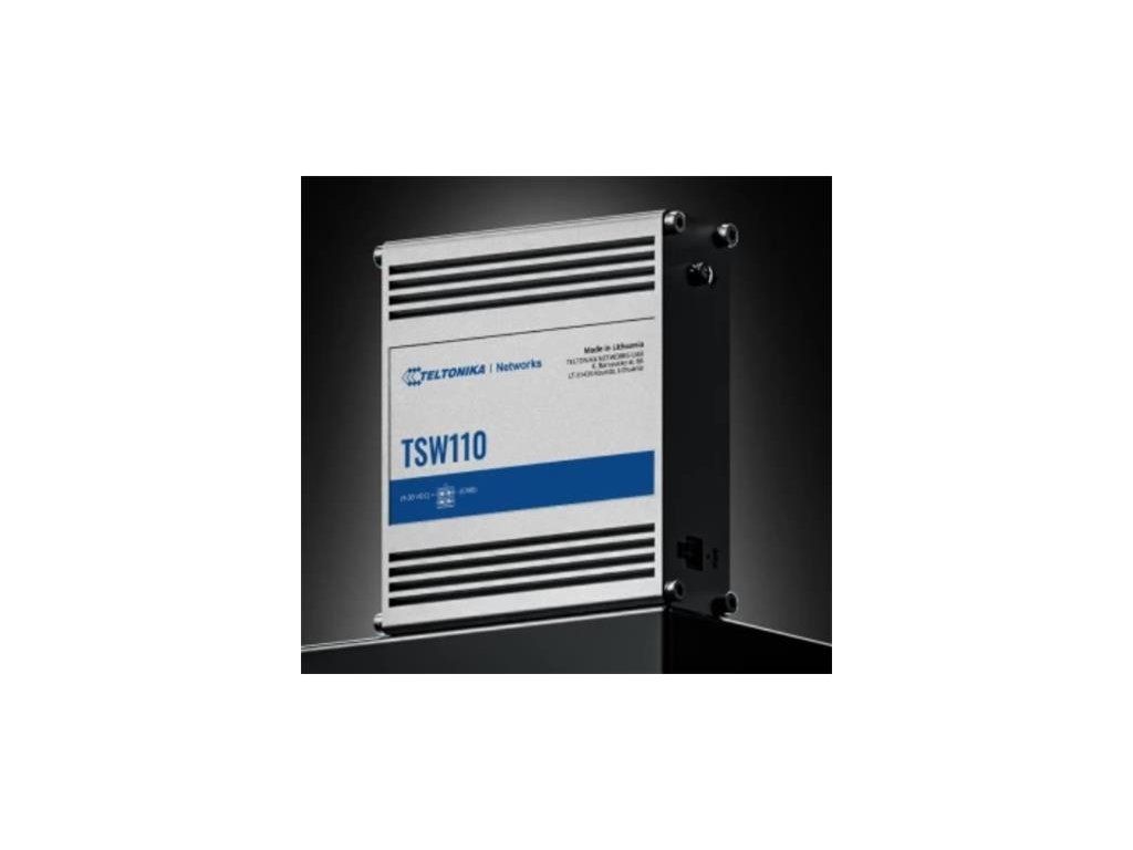 TSW110 je nespravovaný ethernetový přepínač vrstvy 2. Toto malé, ale odolné profesionální zařízení umožňuje průmyslové aplikace s velkou šířkou pásma se spolehlivým datovým připojením. Má pět gigabitových ethernetových portů pro připojení zařízení k síti a podporuje široké napájecí napětí (9-30 V).