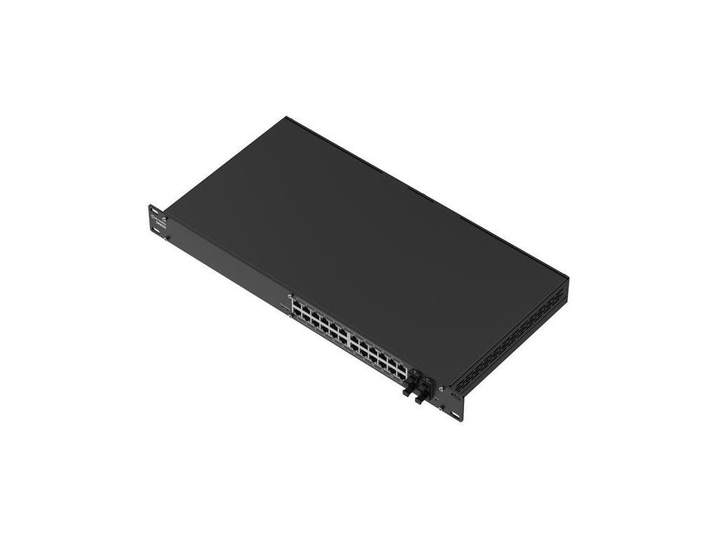 Zařízení je vybaveno cloud managementem RMS s dvouletou licencí, umožňuje vzdálenou správu, konfiguraci a monitoring. Díky non-blocking propustnosti 56 Gbps a podpoře jumbo rámců až 10 000 bajtů zajišťuje vysoký výkon i při náročném síťovém provozu.