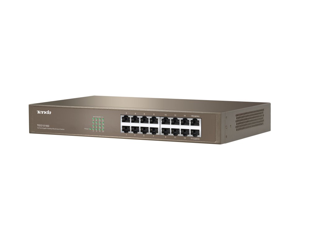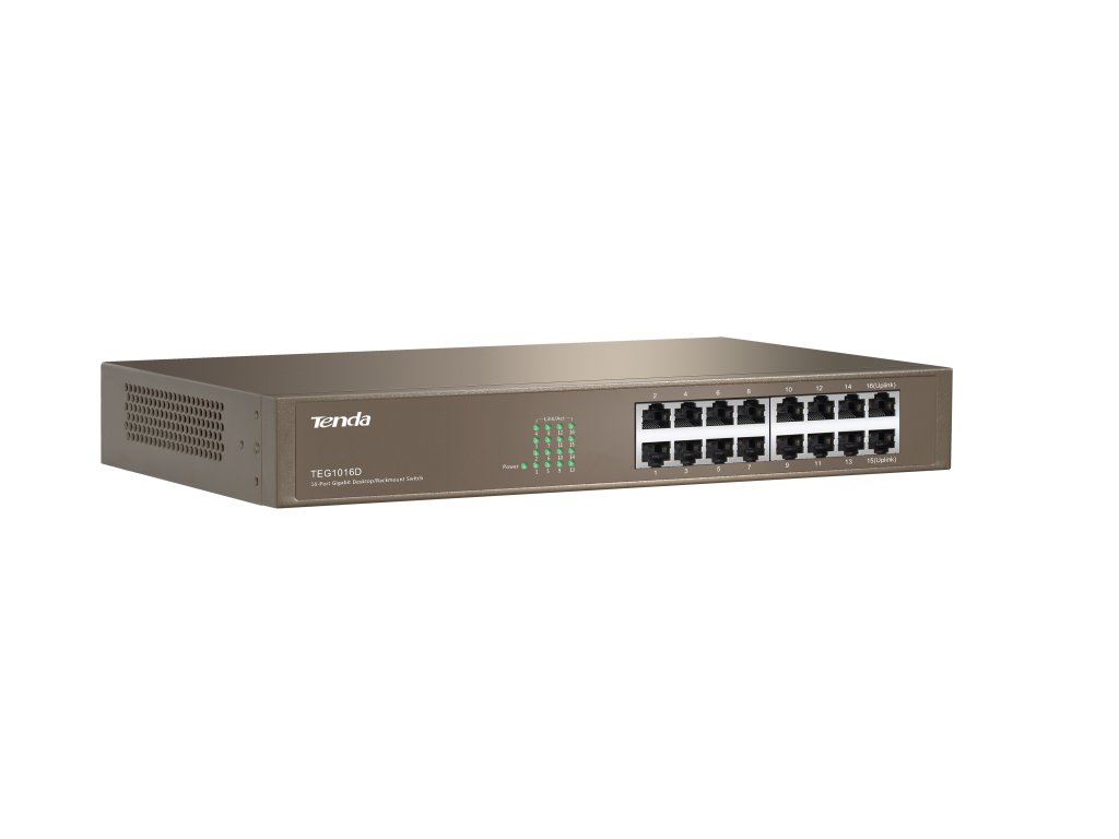 Tenda TEG1016D - 16x Gigabit Switch, Fanless-bez ventilátorov, Rackmount, ochrana proti prepätiu 75010017