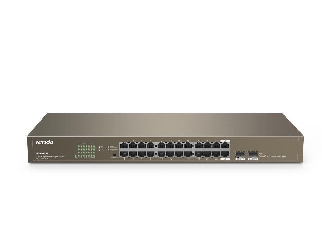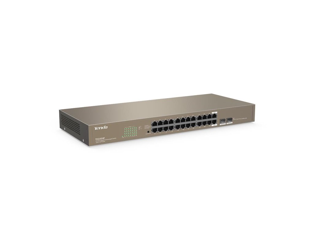 Tenda TEG1024F - 22-portový gigabitový ethernetový prepínač + 2x Combo SFP/RJ45, 10/100/1000 Mb/s, bez ventilátora, sto