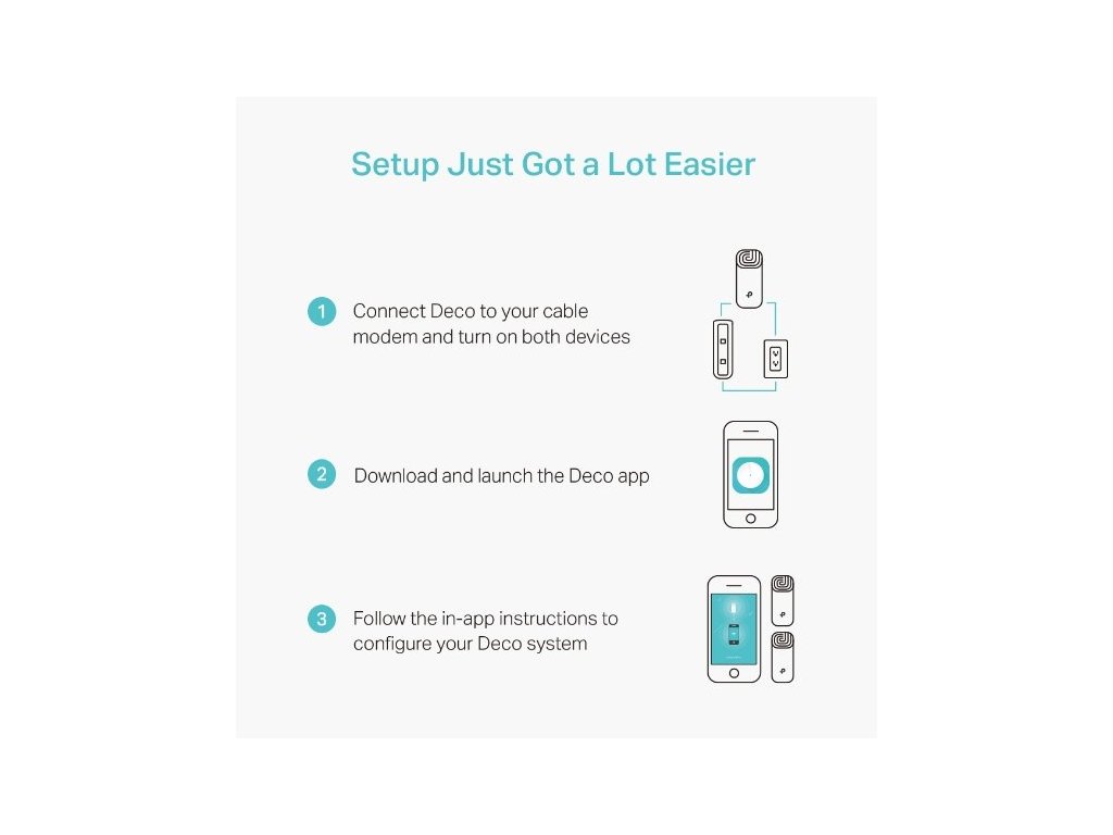 - Instalace je jednodušší než kdy jindy s aplikací Deco, která vás provede každým krokem.