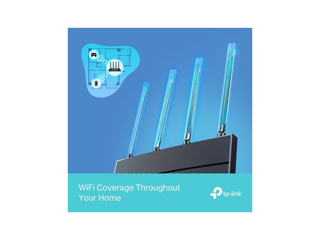 Router TP-Link je vybavený 4 výkonnými externími anténami. Spolu s technologií Beamforming vám zajistí nejsilnější a nejspolehlivější pokrytí WiFi signálu. Zaměřují se na jeho sílu a směřují ho k vašim zařízením. Postarají se o pokrytí i v místech ve vaší domácnosti, která jsou hůře dosažitelná.