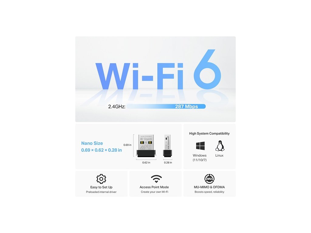 TP-Link Archer TX1U Nano WiFi6 USB adapter (AX300,2,4GHz/5GHz,USB2.0) TP-link