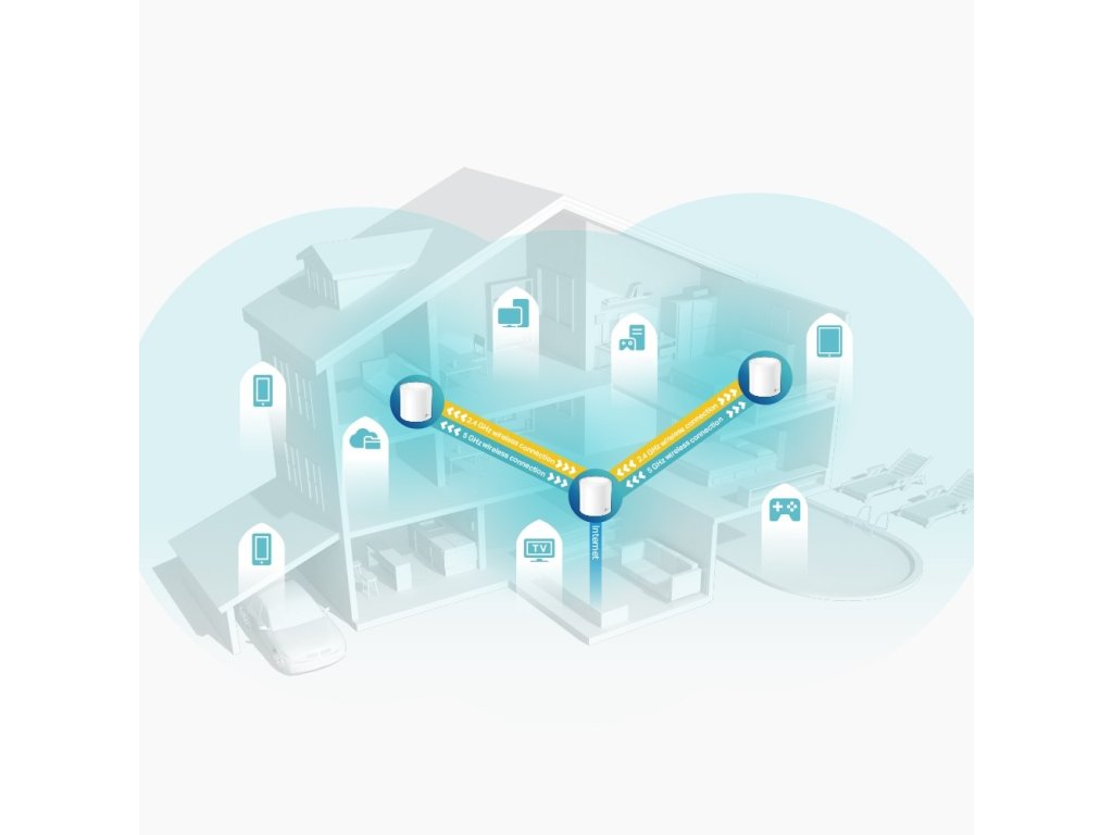 TP-Link Mesh znamená, že jednotky Deco spolupracují na vytvoření jedné jednotné sítě. Váš telefon nebo tablet se automaticky připojí k nejrychlejší Deco jednotce, jak se pohybujete doma a vytváří tak skutečně bezproblémový Wi-Fi zážitek.