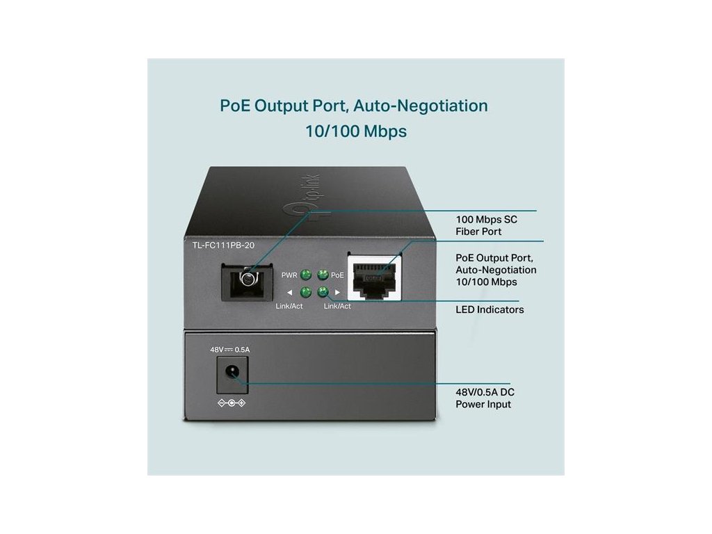 Médiá konvertor 10/100 Mbit/s WDM s 1 portom PoE