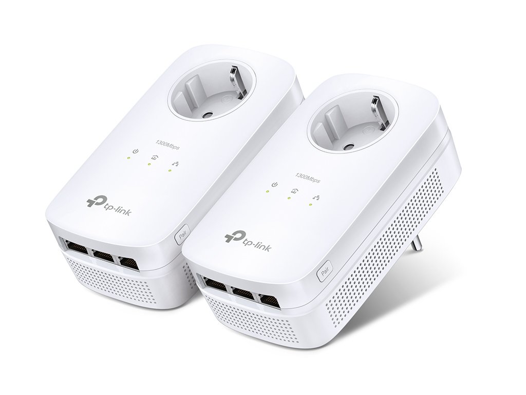 Sada AV1300 Powerline Starter se třemi gigabitovými porty TL-PA8030P KIT *Kompatibilní se zásuvkami standardu HomePlug AV2: vysoká rychlost přenosu dat až 1200 Mb/s1 podpoří všechno, co potřebujete na internetu dělat. *Fáze-nulový vodič/fáze-uzemnění 2×2 MIMO s technologií Beamforming zaručuje větší dosah, vyšší přenosovou kapacitu a stabilnější připojení. *3 gigabitové porty zaručují kabelové připojení pro stolní počítače, chytré televizory nebo herní konzole. *Integrovaná zásuvka elektrické sítě: o žádné přípojné místo nepřijdete. *„Plug-and-Play“: není nutná žádná konfigurace. *Patentovaný režim úspory energie automaticky snižuje spotřebu elektřiny až o 85%2 *HARDWARE FEATURES Plug Type: EU, UK Standards and Protocols: HomePlug AV2, HomePlug AV, IEEE 1901, IEEE 802.3, IEEE 802.3u, IEEE 802.3ab Interface: 3 * Gigabit Ethernet Port, Power Socket Button: Pair Button Power Consumption: Maximum: 6W (220V/50Hz) Typical: 6W (220V/50Hz) Standby: 0.5W (220V/50Hz) LED Indicator: PWR, PLC, ETH Dimensions ( W x D x H ): 5.2×2.8×1.7 in. (131×72×42 mm) Range: 300 Meters over electrical circuit Power Output to Integrated Socket: 16 A *SOFTWARE FEATURES Modulation Technology: OFDM (PLC) Encryption: Powerline Security: 128-bit AES *OTHERS Certification: CE, RoHS Package Contents: Powerline Ethernet Adapter 6.5 ft. (2 m) Ethernet cable (RJ45) Resource CD Quick Installation Guide System Requirements: Windows 2000/XP/2003/Vista, Windows 7/8, Mac, Linux Environment: Operating Temperature: 0°C~40°C (32°F ~104°F) Storage Temperature: -40°C~70°C (-40°F ~158°F) Operating Humidity: 10%~90% non-condensing Storage Humidity: 5%~90% non-condensing