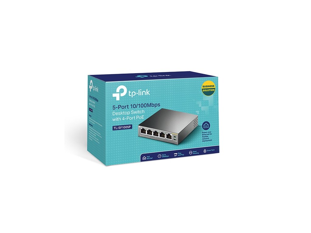 Neřízený switch TL-SF1005P je vybaven pěti porty s rychlostmi přenosu 10/100 Mb/s, který nevyžaduje žádnou konfiguraci a nabízí 4 porty s napájením PoE (Power over Ethernet). Dokáže automaticky detekovat a napájet jakákoli zařízení PD (Powered Devices), která splňují protokol IEEE 802.3af. V tomto provedení je elektrické napájení přenášeno společně s daty přes stejný kabel, což vám umožňuje rozšířit vaši síť i do míst, kde nejsou elektrické přípojky nebo zásuvky, ale kde chcete použít zařízení, jako jsou přístupové body, IP kamery nebo IP telefony, atd.