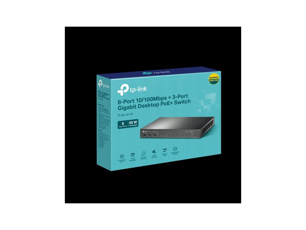 Pro „Plug and Play“ switch TP-Link TL-SL1311P najdete využití v malých a středních podnicích, které vyžadují jednoduchou správu sítě. Má 8 portů RJ45 10/100 Mbit/s, 2 gigabitové porty RJ45 a 1 gigabitový port SFP. Napájení z každého portu PoE dosahuje výkonu až 30 W. Switch zároveň podporuje napájení ze všech portů PoE s celkovým výkonem až 65 W. Díky nim dochází k přenosu napájení i dat jediným kabelem.