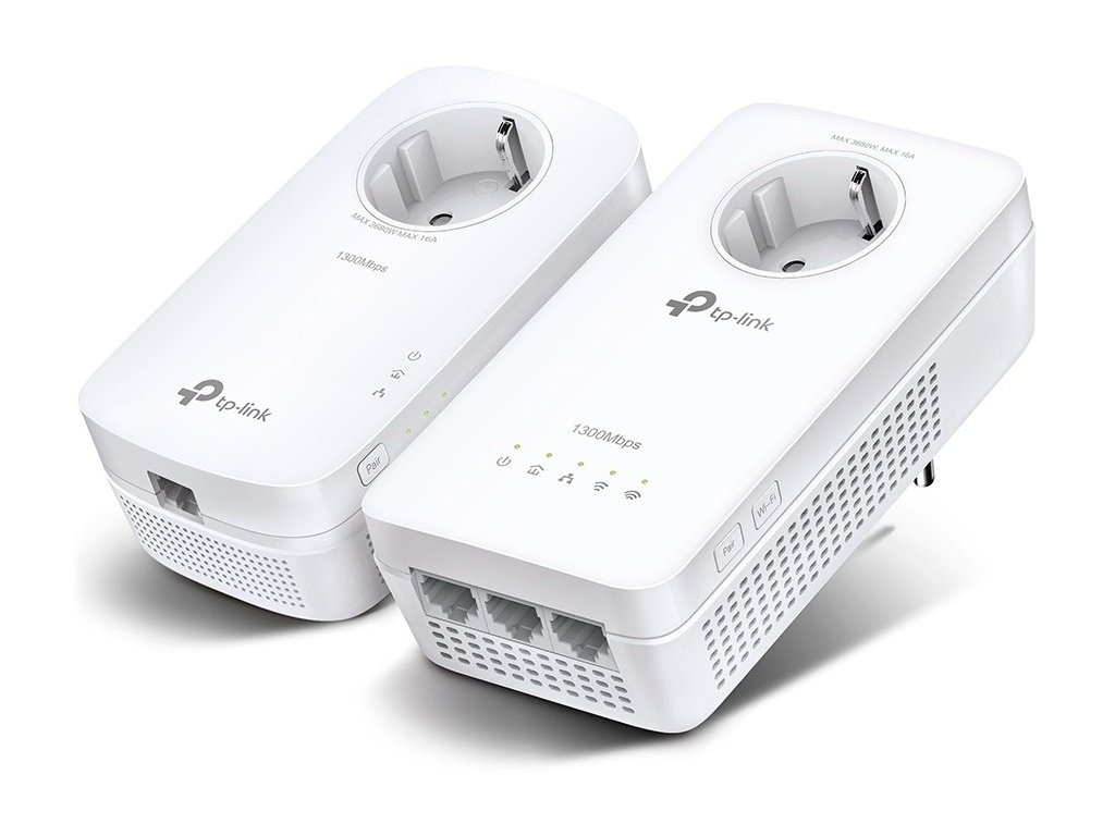 Adaptéry WPA8631PKIT používají pokročilou technologii HomePlug AV2, aby poskytovaly stabilní a vysokorychlostní WiFi síť a současně i kabelové připojení. Jsou však zpětně kompatibílní i se zařízeními HomePlug AV. Přenosová (modulační) rychlost je až 1 300 Mbit/s přes elektrické rozvody na vzdálenost až 300 metrů. Streamujte HD obsah, hrajte online hry a stahujte velké soubory bez přerušování díky spolehlivému připojení k síti Powerline. Praktické provedení přináší další dvě výhody. Jsou k dispozici hned tři gigabitové ethernet porty a nepřijdete o žádnou AC zásuvku, protože oba adaptéry jsou průchozí.