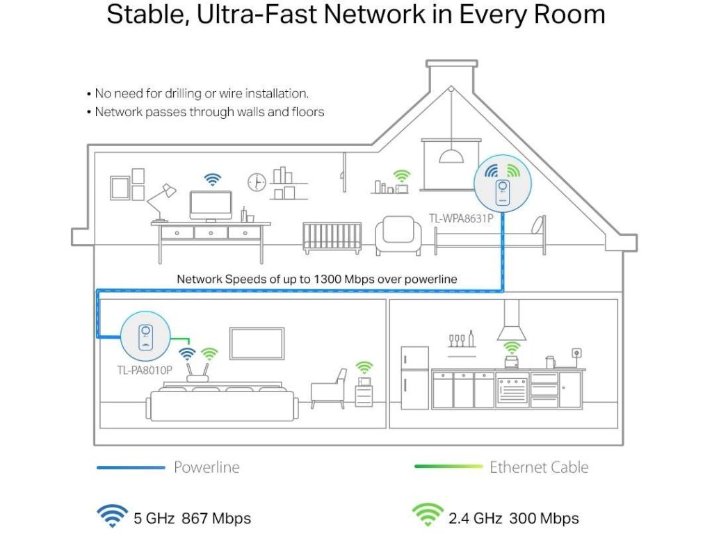 Zapojte jednotku TL-WPA8631P kdekoli, kde potřebujete kabelové a bezdrátové připojení k internetu.