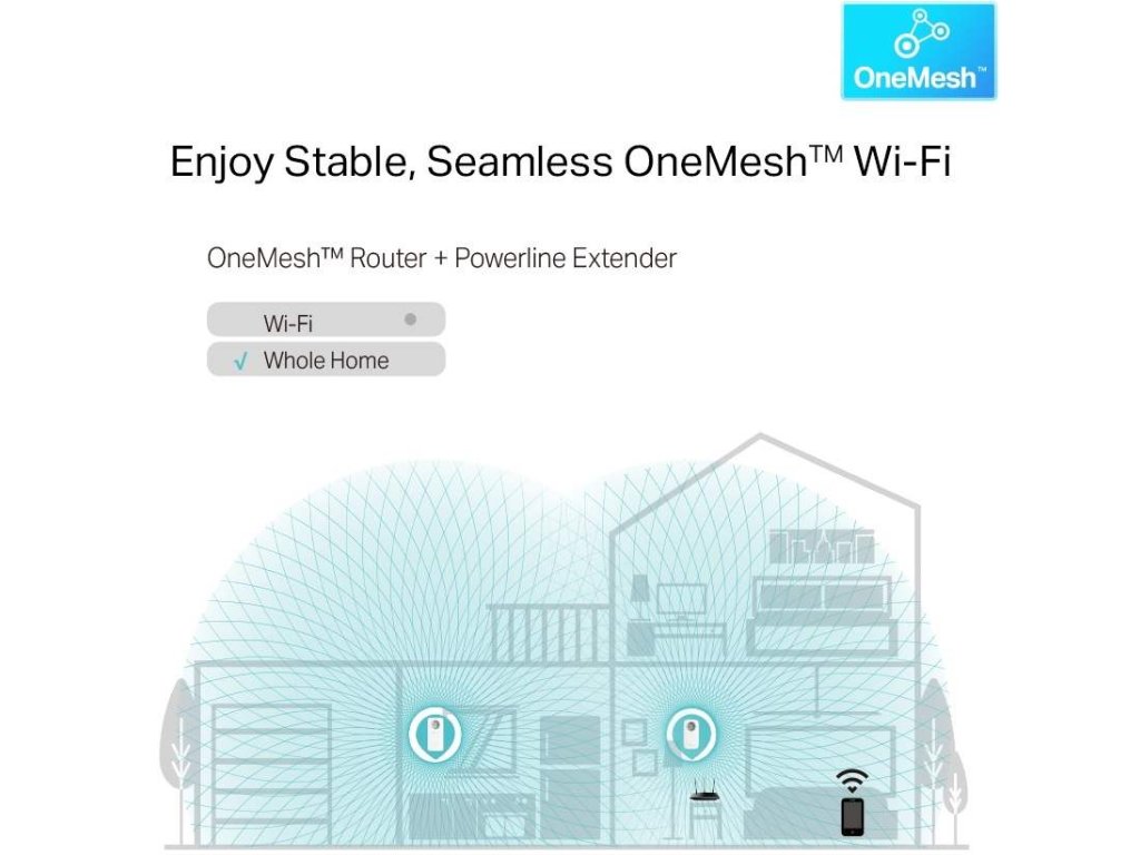 Adaptéry disponují nejnovější technologií OneMesh™ a spolupracují s existujícím routerem OneMesh™, s nímž vytváří jednotnou síť Mesh. Vaše domácí sít tak bude mít pouze jeden název. Předpokladem je, že i hlavní router musí technologii OneMesh™ podporovat.