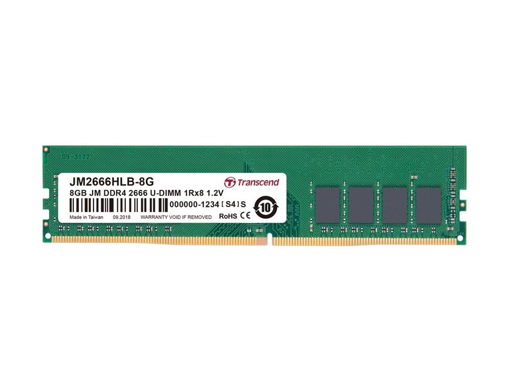 Transcend's JetRam memory modules are manufactured with true ETT grade, brand-name DRAM chips that have passed Transcend's strict screening process and rigorous environmental testing. The modules provide excellent compatibility and fully-tested reliability, which is ideal for PC upgrade at an attractive price. Each memory module is rated at 2666MHz to greatly increase data transmission efficiency by higher bandwidth of up to 21GB/s. Operated at a nominal voltage of just 1.2V, Transcend's DDR4 U-DIMM JetRam memory ensures that both operating temperature and electrical load on the memory controller can be reduced in order to save up to 40% of energy compared to standard DDR3 modules offering 1.5V.