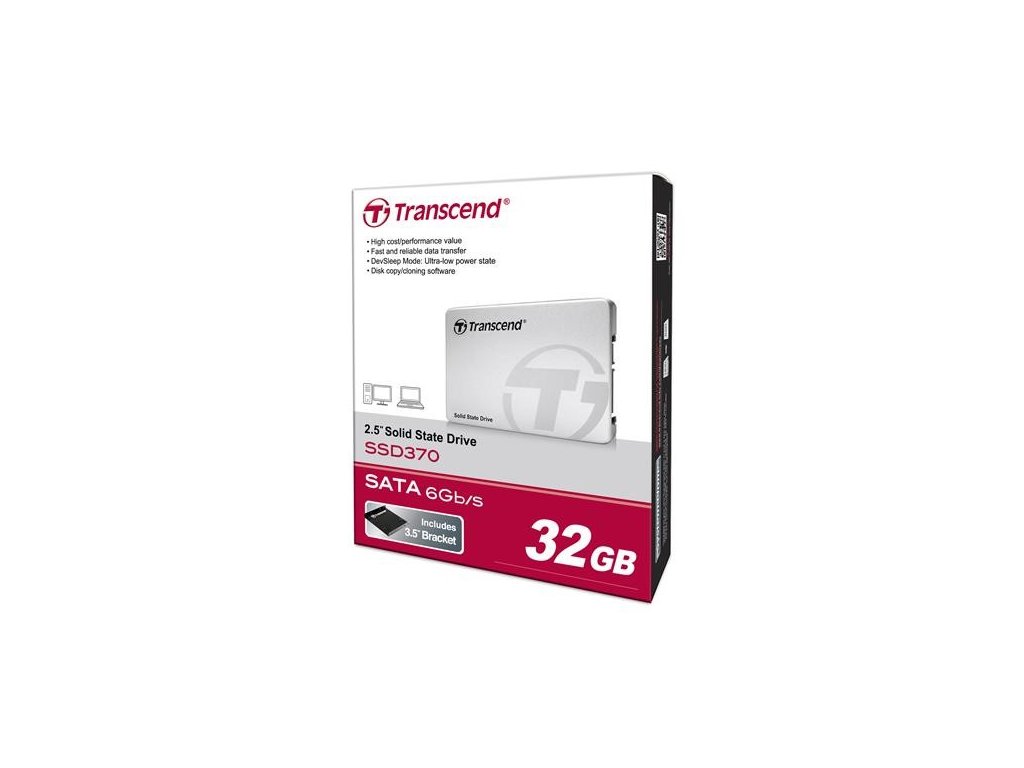 TRANSCEND SSD370S 32GB SSD disk 2.5'' SATA III 6Gb/s, MLC, Aluminum casing, 560MB/s R, 460MB/s W, stříbrný TS32GSSD370S Transcend