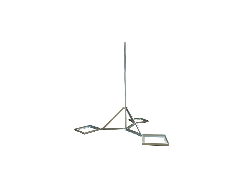 Trojnožka 1,2m pro použití například na plochých střechách - celková výška 1200 mm - trubka průměr 48 mm - pracovní výška 750 mm - délka spodního dílu 500 mm, dva otvory pro ukotvení o průměru 11 mm - váha 22 kg - zatížení dlaždicemu 50x50cm - povrchová úprava galvanickým zinkem -vzpěry ve tvaru U
