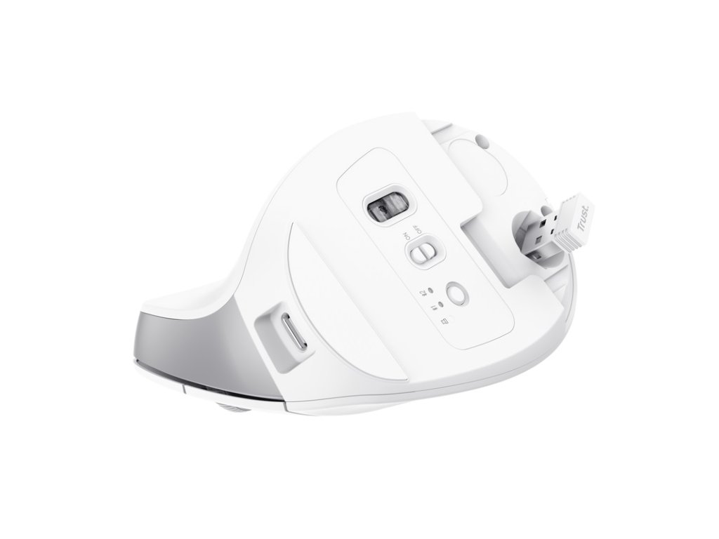 Trust Bayo+/Vertikálna/Optická/Pre pravákov/2 400DPI/Bezdrôtová USB + Bluetooth/Biela 25399