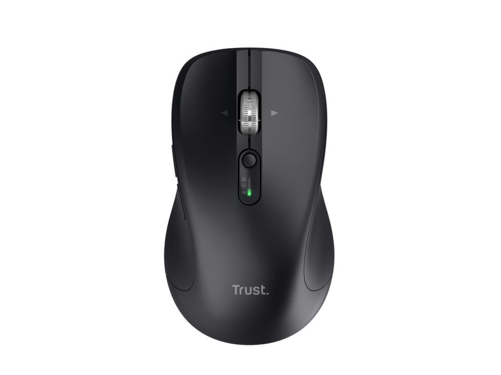 Trust FERRO Hyperwheel bezdrátová myš myš s možností připojení více zařízení a hyperscrollovacím kolečkem pro super rychlé rolování * tato bezdrátová myš se připojuje až ke 3 zařízením prostřednictvím 2 Bluetooth portů a 2,4G USB-A přijímače - přepínejte mezi notebookem, tabletem nebo stolním počítačem jediným stisknutím tlačítka * díky nastavitelnému rozlišení v rozmezí 1000–3200 si můžete užívat plynulé a přesné ovládání při práci, prohlížení, úpravách a dalších činnostech * tato myš vám pomůže pracovat se sníženým dopadem na životní prostředí, aniž byste museli slevovat z výkonu, designu nebo pohodlí (vyrobeno z 85 % recyklovaných plastů) Technické parametry Ovládací prvky: vlevo, uprostřed, vpravo, vpřed, vzad, smyčka dpi, režim Rolovací kolečko: ano, kovové hyperscrollovací Počet tlačítek: 9 Tiché kliknutí: ano Tlačítko DPI: ano Horizontální posun: ano Programovatelná tlačítka: ne Nastavitelné závaží, podpora zápěstí: ne Použití levou či pravou rukou: pro praváky Rozhraní/konektivita: bezdrátový USB-A (2.0, 3.0) přijímač (dongle) 2,4GHz Bluetooth rozhraní: ano Napájení: 2x AA baterie Výdrž baterie: až 19 měsíců (založeno na průměrném používání, liší se za různých podmínek) Nastavitelné DPI: ano Rozlišení senzoru: 1000, 1600, 2400, 3200dpi Snímač pohybu: optický Software: ne Materiál: ABS Barva: černá Rozměry: 118 x 67 x 40mm Hmotnost: 133g Doporučené požadavky na systém: - port USB-A - Windows 11, macOS 13, 14 nebo 15 - připojení Bluetooth Obsah balení: * bezdrátová myš Ferro * skladovatelný USB mikropřijímač * 2x AA baterie * uživatelská příručka Záruka: 2 roky Odkaz na stránku výrobce: https://www.trust.com/en/product/25673-ferro-hyperwheel-multi-device-wireless-mouse?q=25673